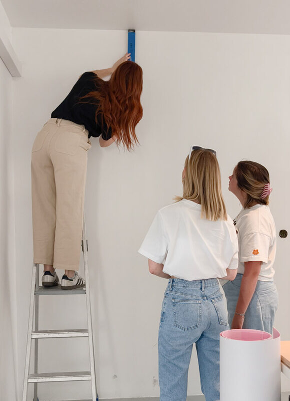 • À l’aide d’un niveau, tracez une ligne de repère très légère verticalement : Ce repère vous servira pour assurer une pose droite.
