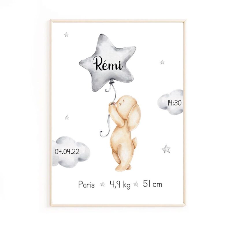 Affiche de naissance lapin dans les étoiles personnalisée