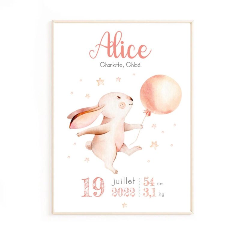 Affiche de naissance lapin personnalisée