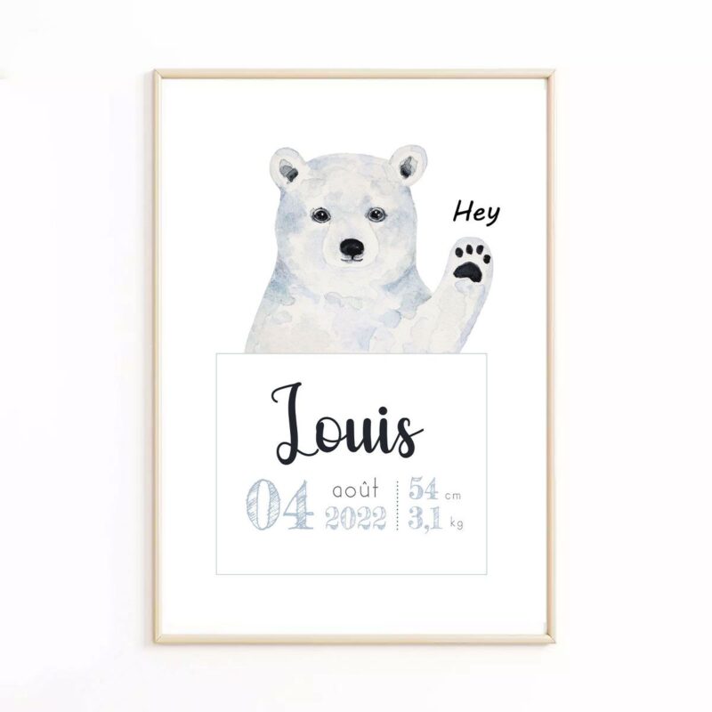 Affiche de naissance ours polaire