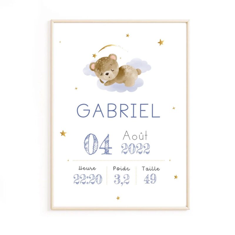 Nos affiches de naissance pour enfant et bébé ont été imaginés pour garder un souvenir précieux de la naissance de votre enfant. Chaque affiche arbore les informations de naissance de bébé : son prénom, sa date de naissance, sa taille, son poids... Elles feront un cadeau de naissance super original pour célébrer cet heureux évènement et compléteront à merveille la décoration de chambre de bébé. Nos affiches sont imprimées et fabriquées en France sur-demande, sur un papier de 275g/m2 de haute qualité avec une finition satinée et une surface lisse. Le papier utilisé est résistant au vieillissement.