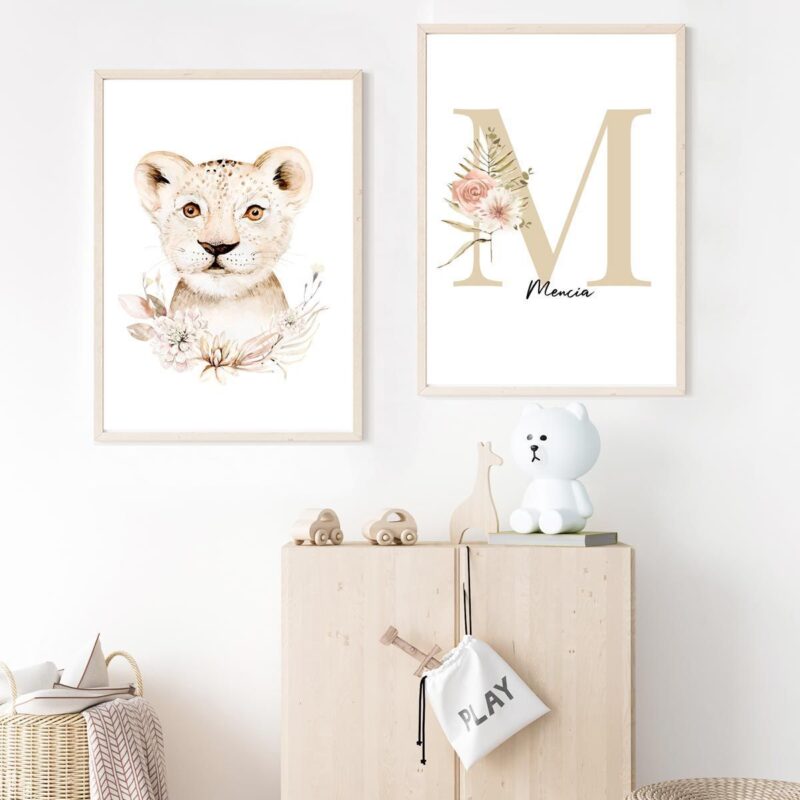 Lot de 2 affiches enfant à personnaliser : initiale + prénom