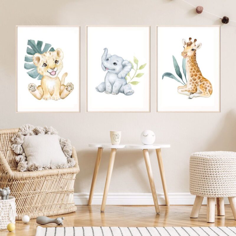 Lot de 3 affiches bébé animaux safari Big Five