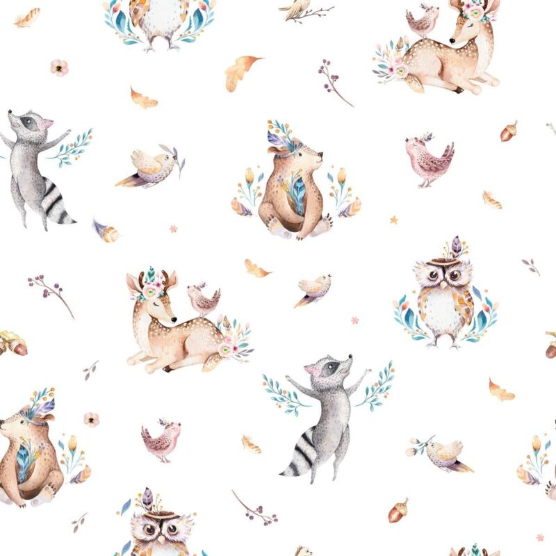 Papier peint animaux de la forêt bohème pour enfant