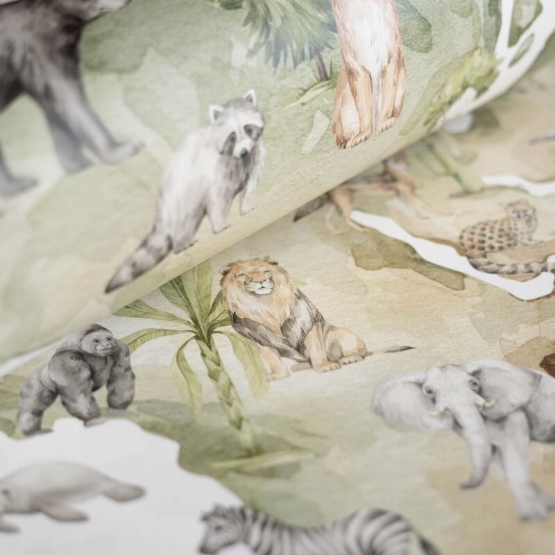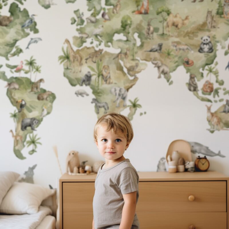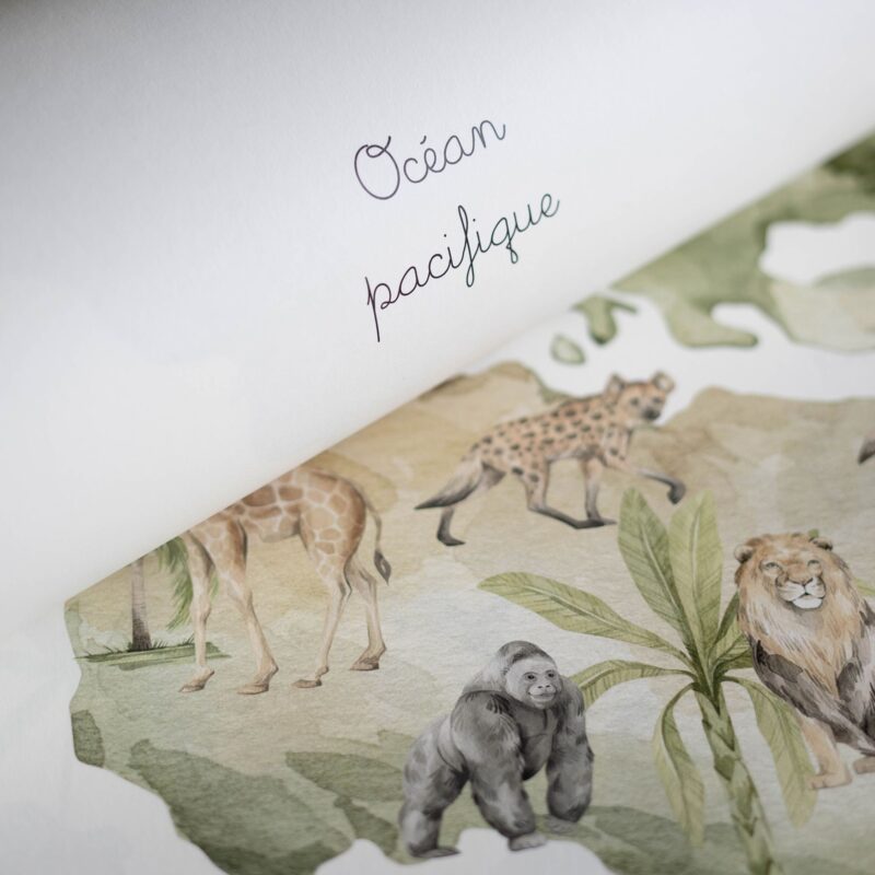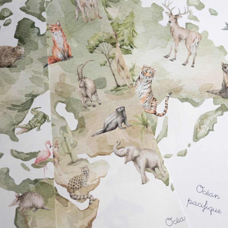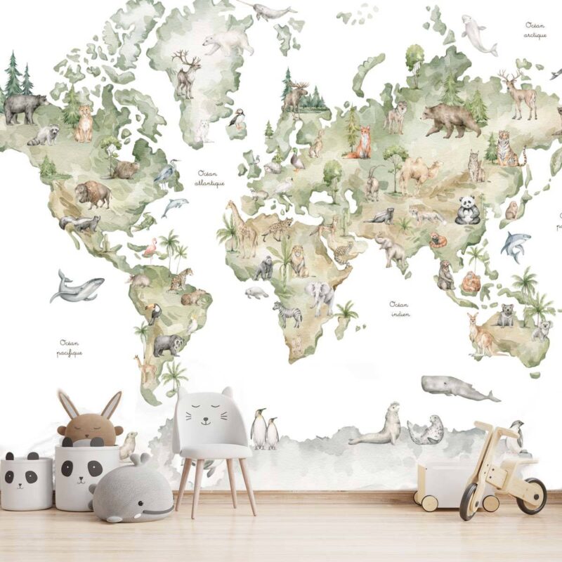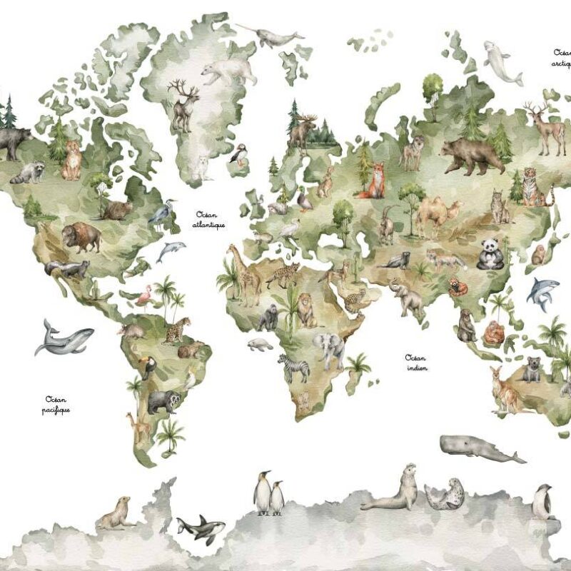 Papier peint carte du monde animaux enfant