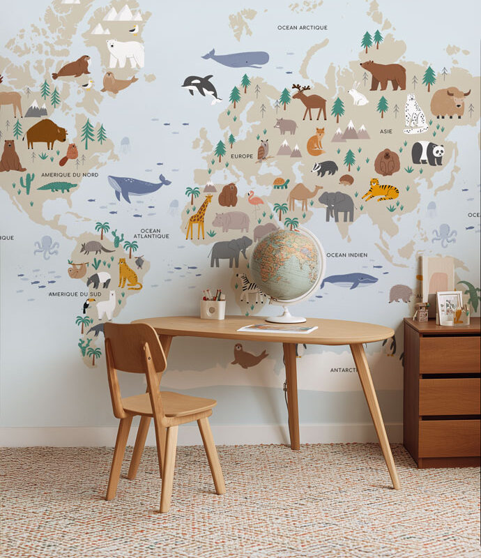 Idéal pour éveiller la curiosité et l’imagination, ce papier peint enfant transforme la chambre en un véritable terrain d’exploration. Il allie décoration et apprentissage, permettant aux plus jeunes de découvrir le monde tout en s’amusant.