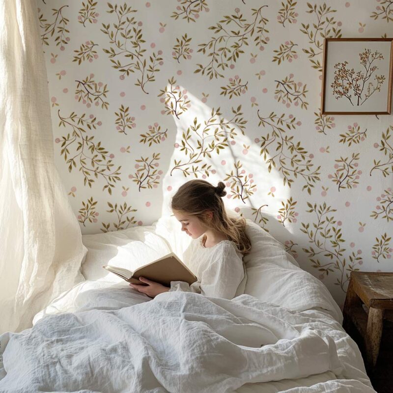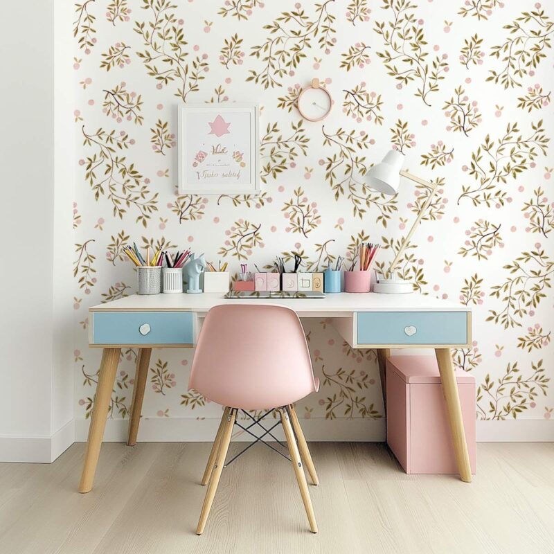 Papier peint Feuillage Rose pour Chambre Fille : Apportez fraîcheur et élégance à l’univers de votre enfant