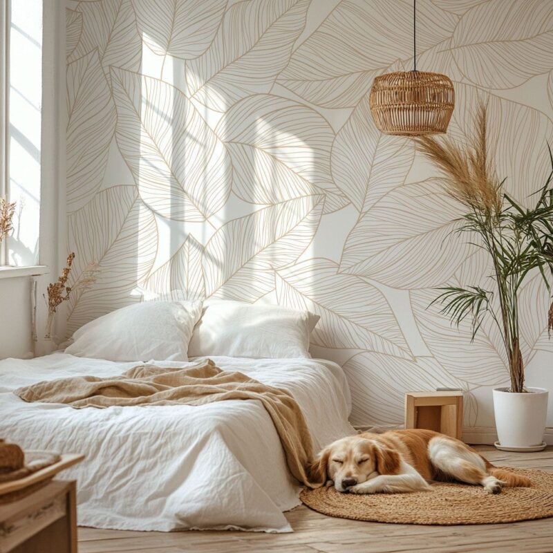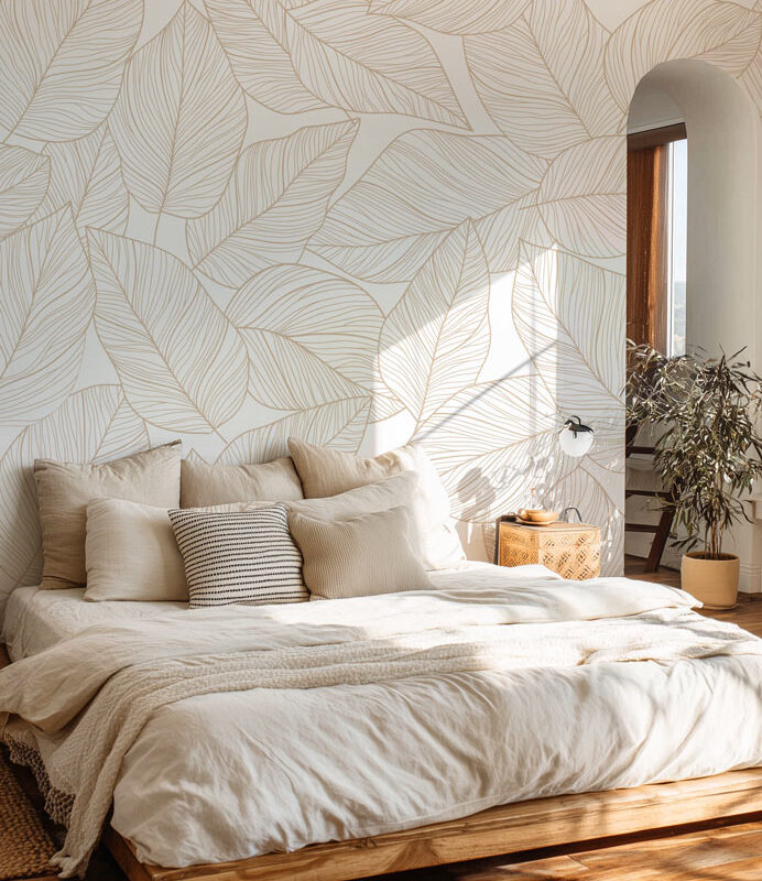 Papier peint Feuilles Beige : Une élégance naturelle pour un intérieur apaisant