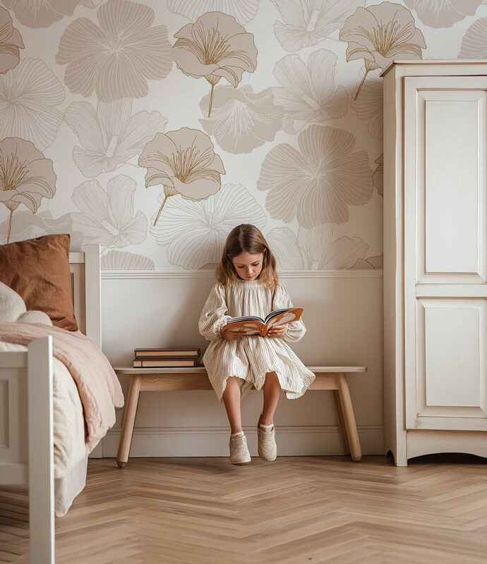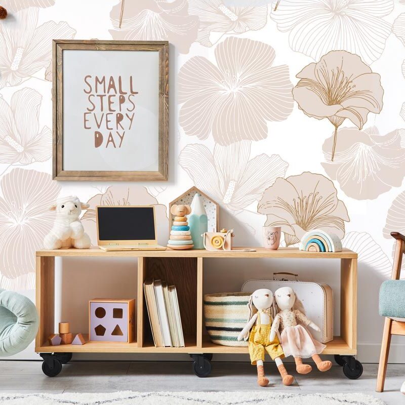Papier peint fleurs beige