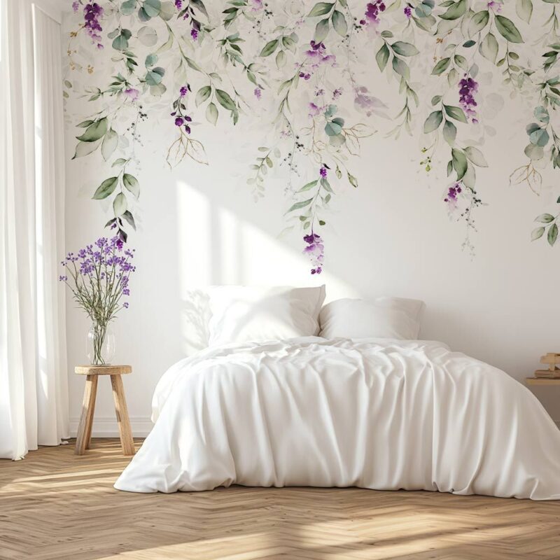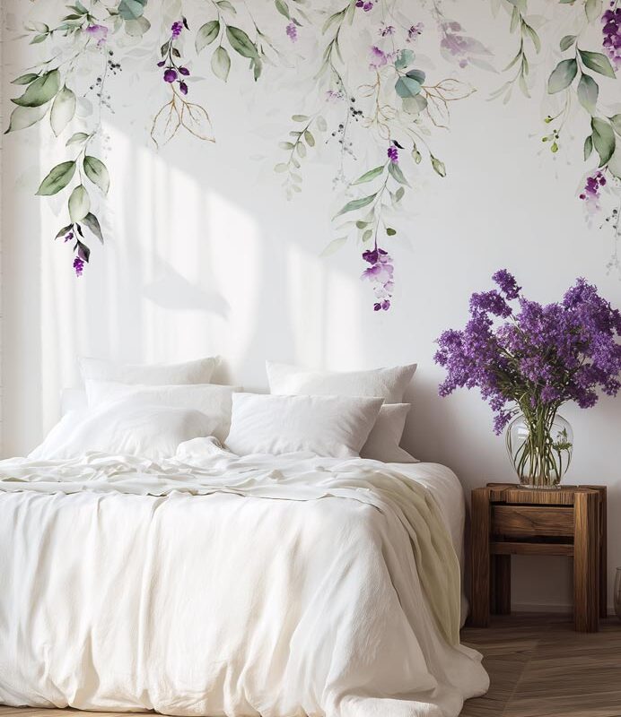 Papier peint Fleurs Tombantes Lavande : Une évasion provençale pour une ambiance apaisante