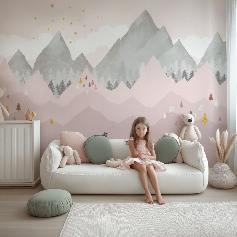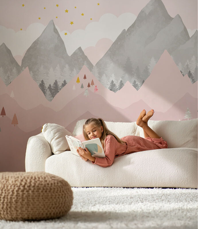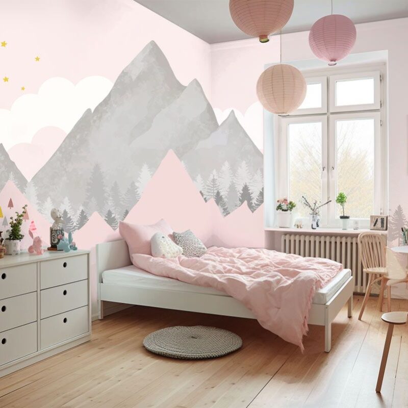 Papier peint montagne panoramique rose