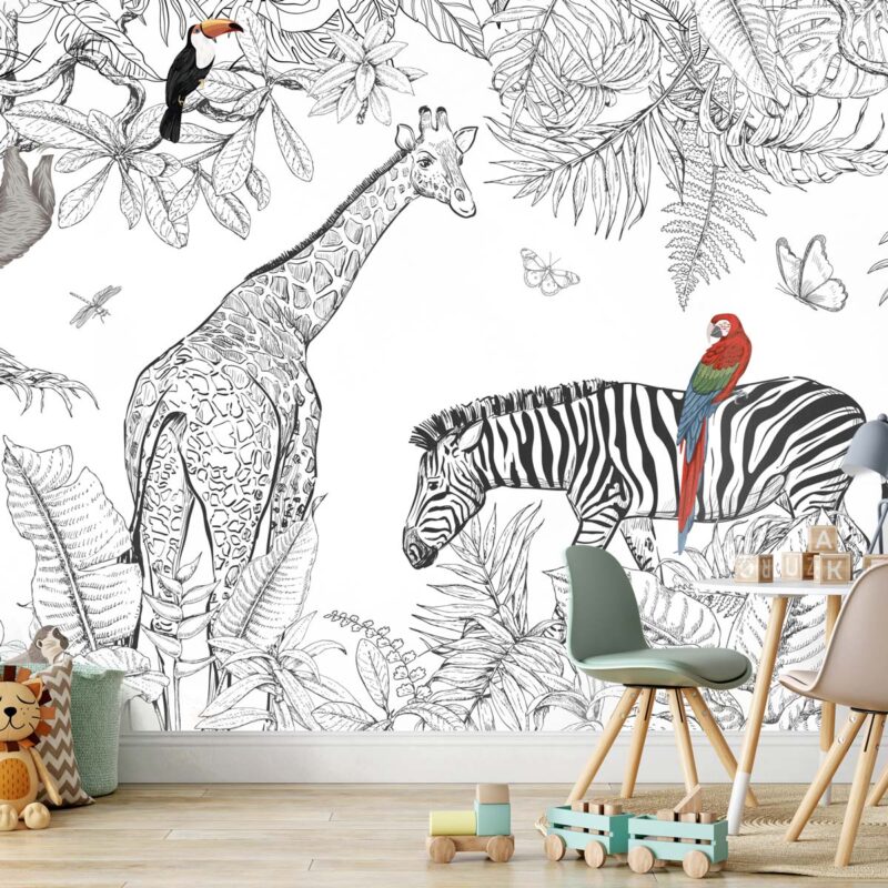 Papier peint noir et blanc chambre enfant