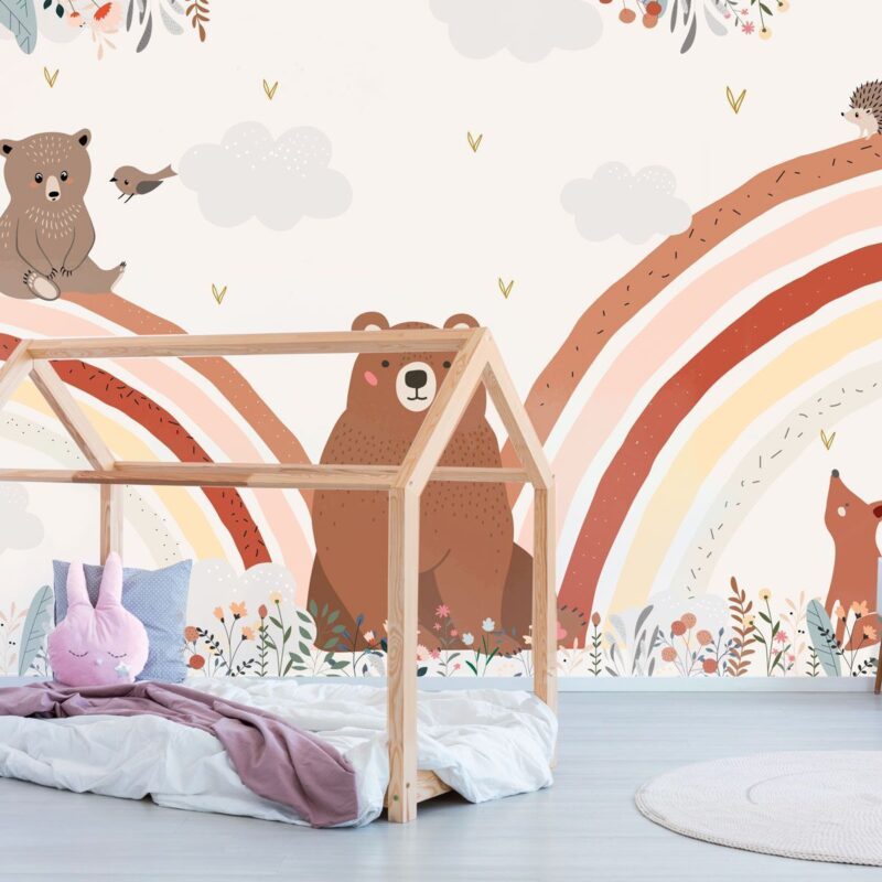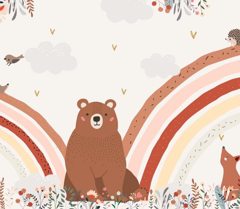Papier peint panoramique ourson arc-en-ciel