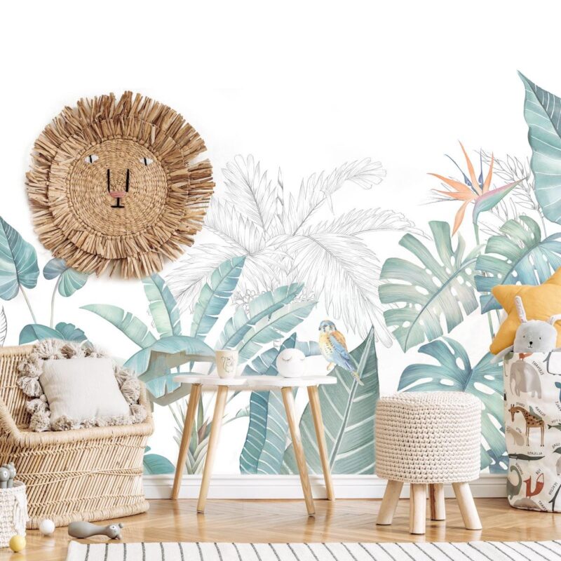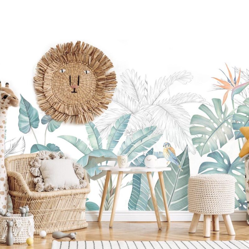 Transformez votre intérieur en un véritable havre de nature avec notre papier peint panoramique au feuillage luxuriant. Ses nuances de papier peint vert menthe créent une atmosphère apaisante et rafraîchissante, tandis que les feuilles en noir et blanc en arrière-plan ajoutent une touche subtile et élégante. Au cœur de ce décor végétal, un majestueux oiseau du paradis aux couleurs vives apporte une énergie dynamique et une touche d'exotisme. Idéal comme papier peint chambre, il s’intègre parfaitement dans une chambre d’enfant pour un environnement naturel et stimulant, mais aussi dans une chambre d’adulte, un salon ou toute autre pièce de la maison. Offrez-vous une échappée verdoyante avec ce papier peint feuillage, qui insuffle une sensation de fraîcheur et de nature dans votre espace de vie. ?