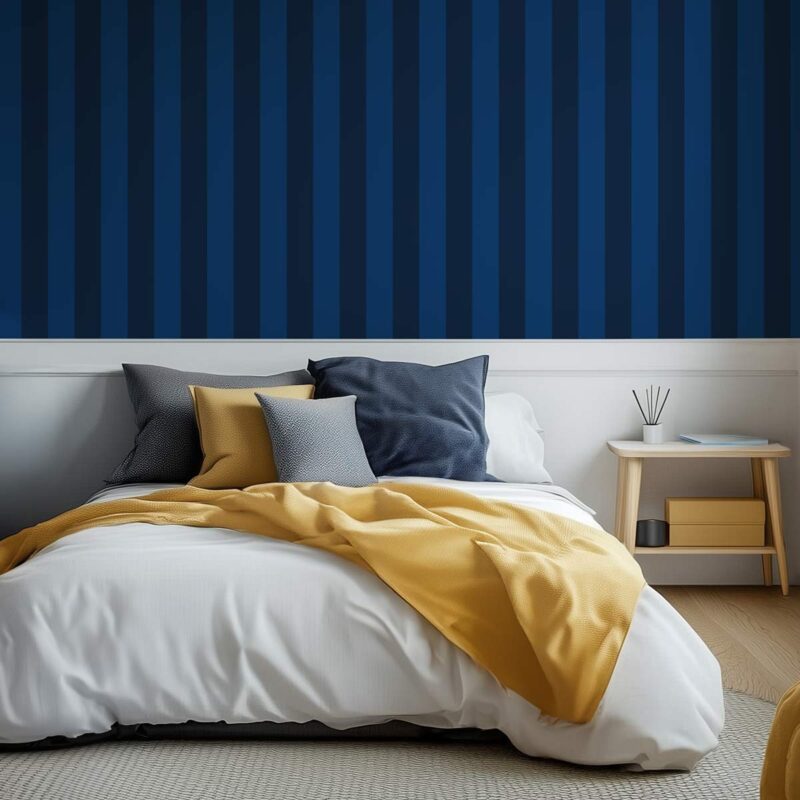 Papier peint rayures Saphir – Bleu foncé