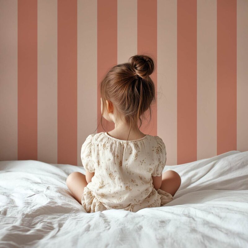 Papier peint rayures Saumon – Corail & Rose Poudré