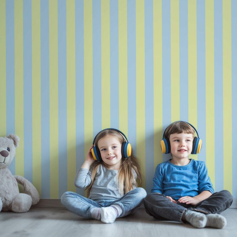 Papier peint rayures Arlequin – Jaune & Bleu Clair