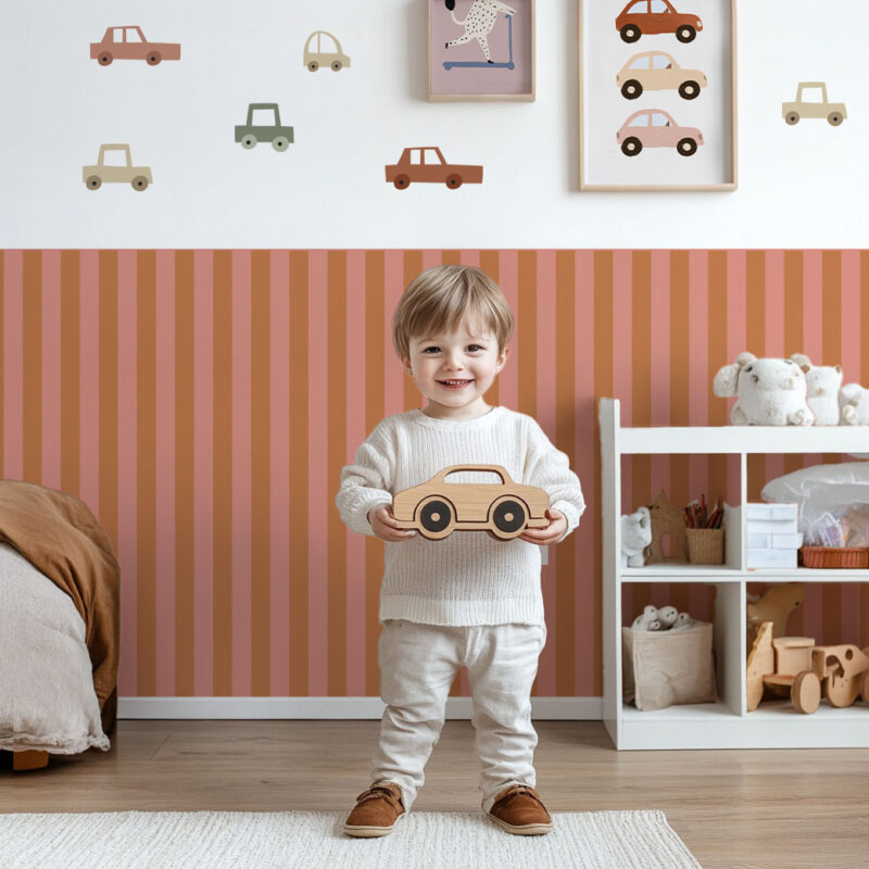 Papier peint rayures Terre de Sienne – Marron & Rose Poudré