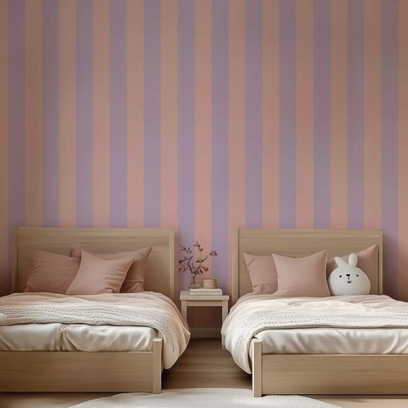 Apportez une touche vitaminée à votre intérieur avec ce papier peint à rayures verticales mêlant un violet clair à un rose orangé. Ce duo original crée un bel équilibre entre douceur et peps. Disponible en deux versions – rayures larges (9 cm) ou fines (5 cm) – ce motif vertical structure les murs tout en légèreté. Idéal pour agrandir visuellement l’espace et créer une ambiance joyeuse tout en douceur. Cette tapisserie de notre collection Poudrée est un choix déco tendance qui s'intégrera parfaitement à tous les univers, allant de la chambre d’enfant à la chambre parentale.