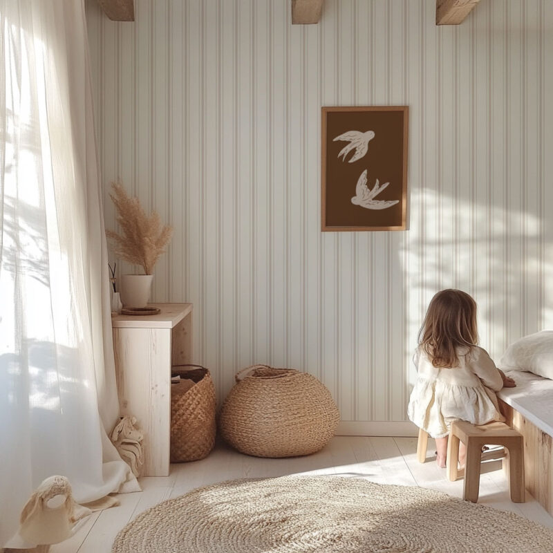 Apportez une touche de raffinement intemporel à votre intérieur avec notre papier peint Rayures Subtiles. Son motif épuré se compose de fines rayures beiges, rehaussées de traits encore plus fins de chaque côté, sur un fond écru doux et lumineux. Ce design subtil et élégant crée une ambiance apaisante et sophistiquée, parfaite pour une chambre, un salon ou une chambre d’enfant.