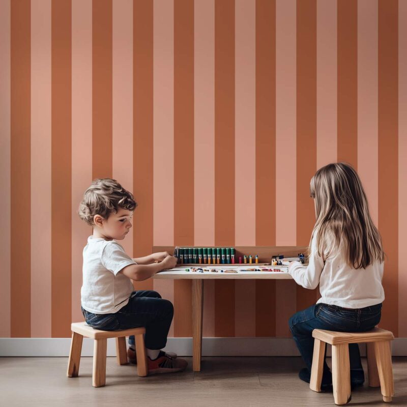 Papier peint rayures Bronze – Terracotta & Rose Poudré