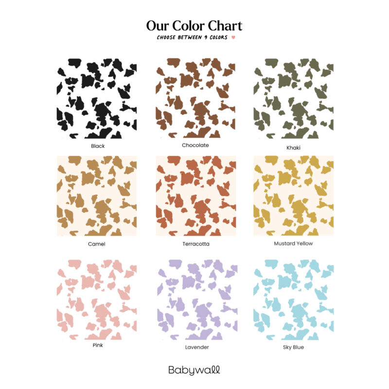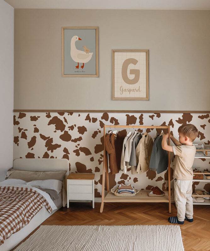 Apportez une touche d’originalité et de caractère à vos murs avec notre papier peint à motifs taches de vache. À la fois tendance et simple, il transforme n’importe quel espace en un lieu unique et stylé. Disponible en 9 coloris : noir, chocolat, kaki, camel, terracotta, moutarde, rose, lilas et azur, il s’adapte à tous les styles d’intérieur, du plus classique au plus contemporain. D’autres coloris sont également disponibles sur demande, pour un rendu entièrement personnalisé selon vos envies. Parfait pour le salon, la chambre ou même un bureau créatif, ce papier peint est l’alliance idéale entre audace et sophistication.