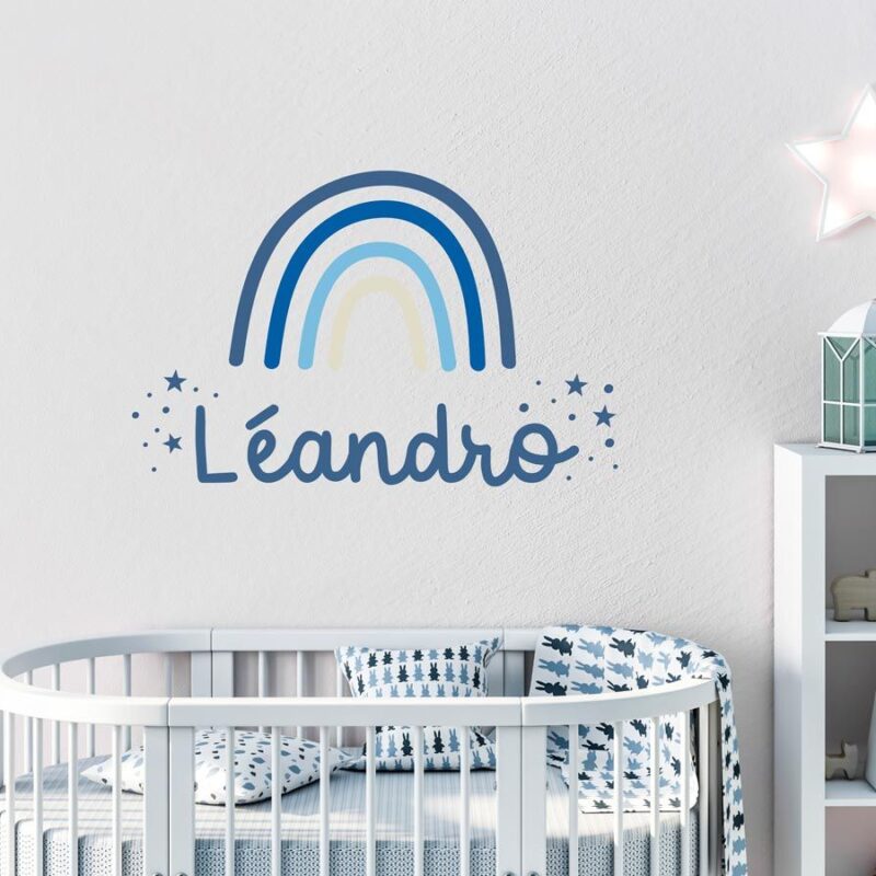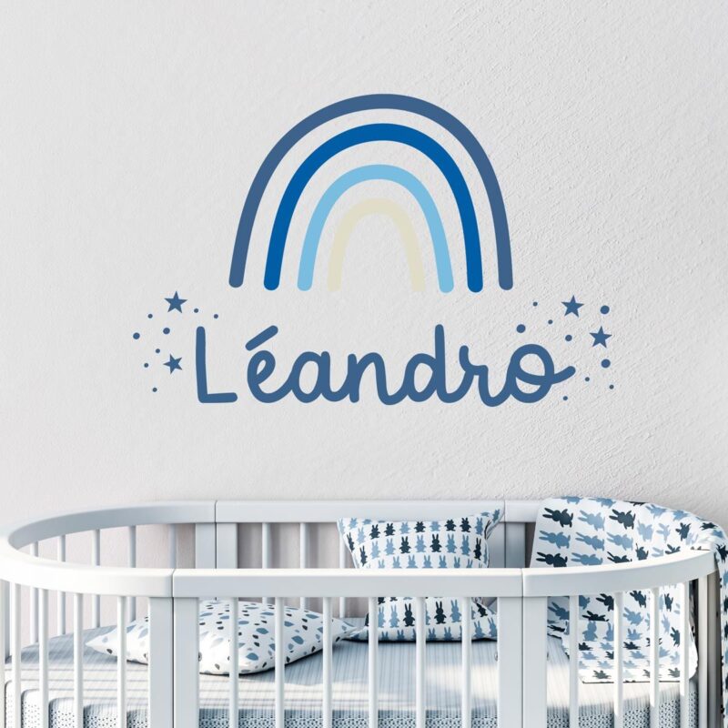 - Sticker arc en ciel bleu personnalisé pour chambre d’enfant