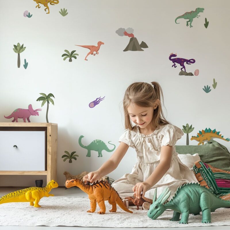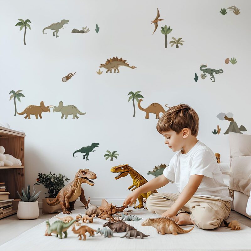 ? Dinosaures : des créatures emblématiques prêtes à rugir sur les murs. ? Volcan en éruption pour une ambiance spectaculaire. ? Palmiers et plantes pour un décor tropical. ? Œufs de dinosaures pour imaginer des naissances magiques. ☄️ Météorites pour ajouter une touche cosmique. Avec 78 stickers variés, chaque détail contribue à transformer la pièce en un univers palpitant !