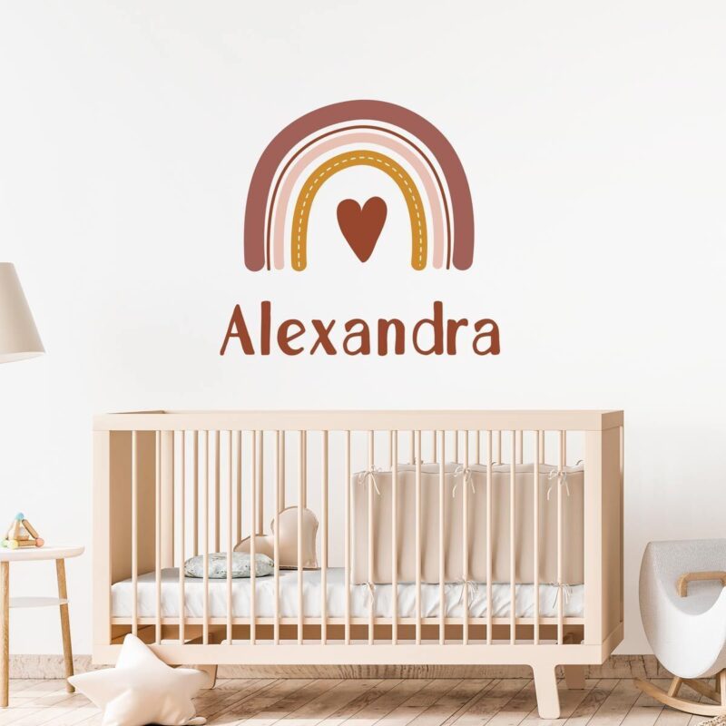 - Sticker mural arc en ciel avec prénom personnalisé pour chambre d’enfant