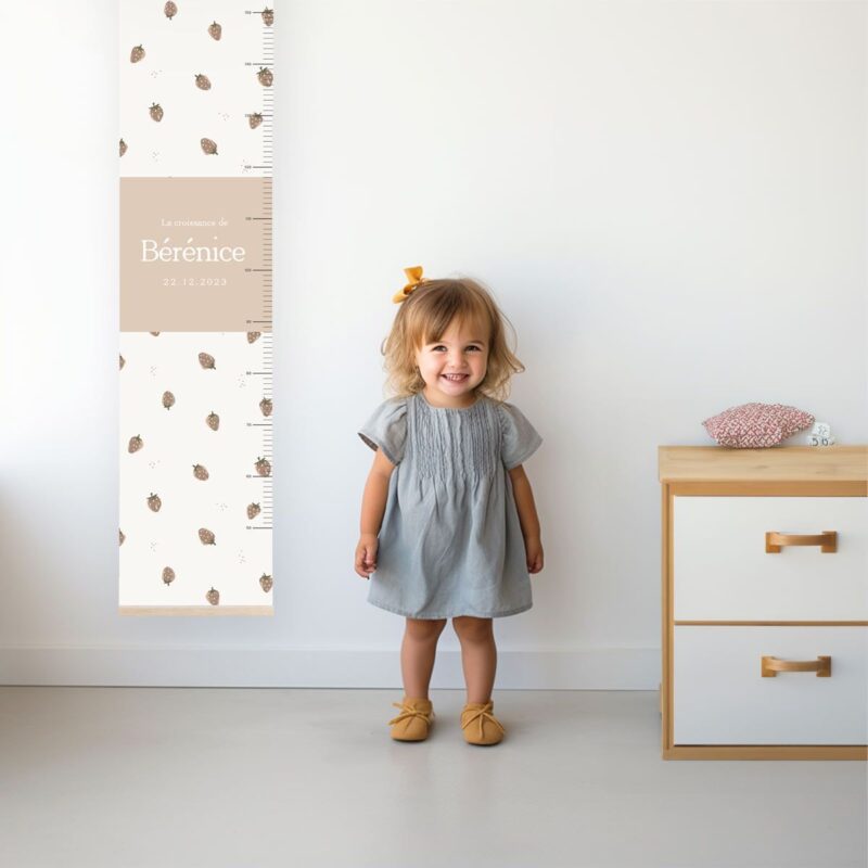 Conçue pour mesurer la taille de votre enfant de manière précise, la toise suit sa croissance de 50 à 150 cm, de ses premiers centimètres jusqu’à son âge scolaire, pour que chaque étape reste gravée dans votre mémoire.