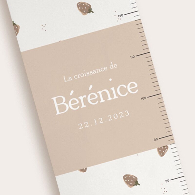 Rendez cette toise vraiment unique en y ajoutant le prénom de votre enfant. C’est une façon spéciale de créer un lien émotionnel avec cet objet de mesure qui l’accompagnera pendant des années. Vous souhaitez y ajouter sa date de naissance ? Ajoutez là dans le champ “Date de naissance” ou laissez ce champ vide si vous ne souhaitez pas l’inscrire.